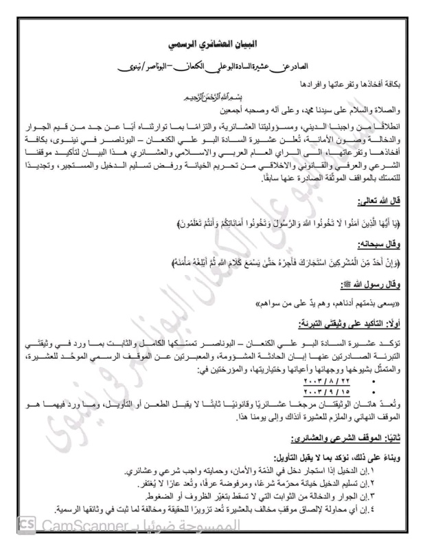 عشيرة البو علي الكنعان تتبرأ من نواف الزيدان بعد اعترافه بتسليم عدي وقصي للأمريكان